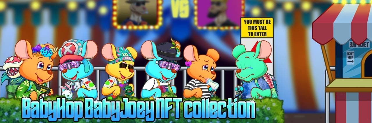 The BabyHop Project, BabyJoey is the OG collection of 500 unique BabyKangaroos (joeys) with a retro 90s vibe! They come ready to play in the Joey Claw Machine!
